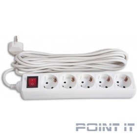 BURO Сетевой удлинитель 5 розеток, 5 метров, (BU-PS5.5/W), белый (пакет ПЭ) {828018}